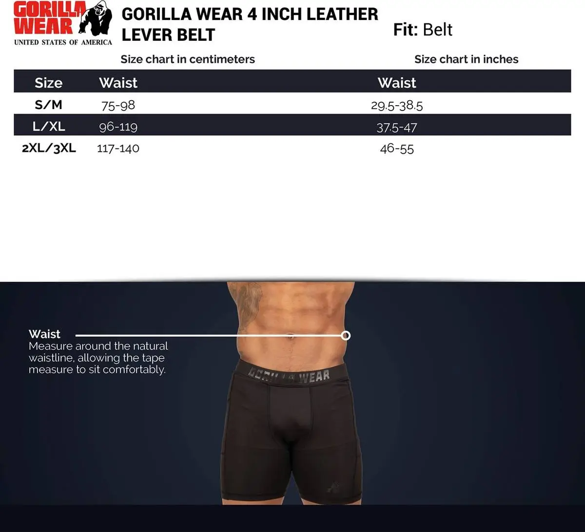 Dette dobbeltsydde beltet er laget av høykvalitetsskinn og har en stor Gorilla Wear-logo på ryggen. Den robuste låsen kan takle enhver utfordring, og sikrer deg under selv de tungeste løft. Beltet har en utmerket passform, gir optimal støtte, og lar deg løfte uten å bekymre deg!