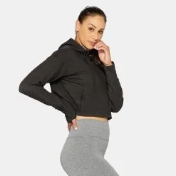 Feel the difference of the Eclipse Cropped Hoodie with its wear-anywhere, light fleece fabric. Eclipsing panels on the back, layer gracefully for a flattering shape.
