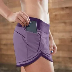 - Zipper Side Pockets: Two hidden zipper side pockets placed high on the hip to minimize content movement during active use. This women’s fitness short is large enough for most phones.
