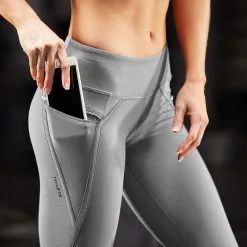 - Side Pockets: Integrated zippered side pockets store cell phones, credit cards and keys, placed high on the hip to minimize content movement during active use. A mesh outer layer adds an attractive style element while being backed with solid fabric to ensure pocket contents are not visible. YKK semi-auto lock zippers guarantee nothing will fall out of of this legging with pockets during training.