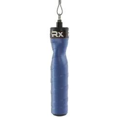 Rx Jump Rope handles use an industrial grade multidirectional swivel axis bearing system producing a near frictionless rotation. Our patent pending swivel attachment allows for the cable to reach top speeds or slow down to suit the athlete’s needs. The ergonomically contoured handles are 6 inches long and 1 inch in diameter to allow the athlete to maintain the most natural and relaxed grip. This reduces fatigue commonly experienced in the forearms and shoulders. The contoured pinch points allow the athlete to maintain optimal rope shape while still allowing for a relaxed grip. Common in most racquet sports, each handle is wrapped by hand with the most absorbent tape grip in the world.