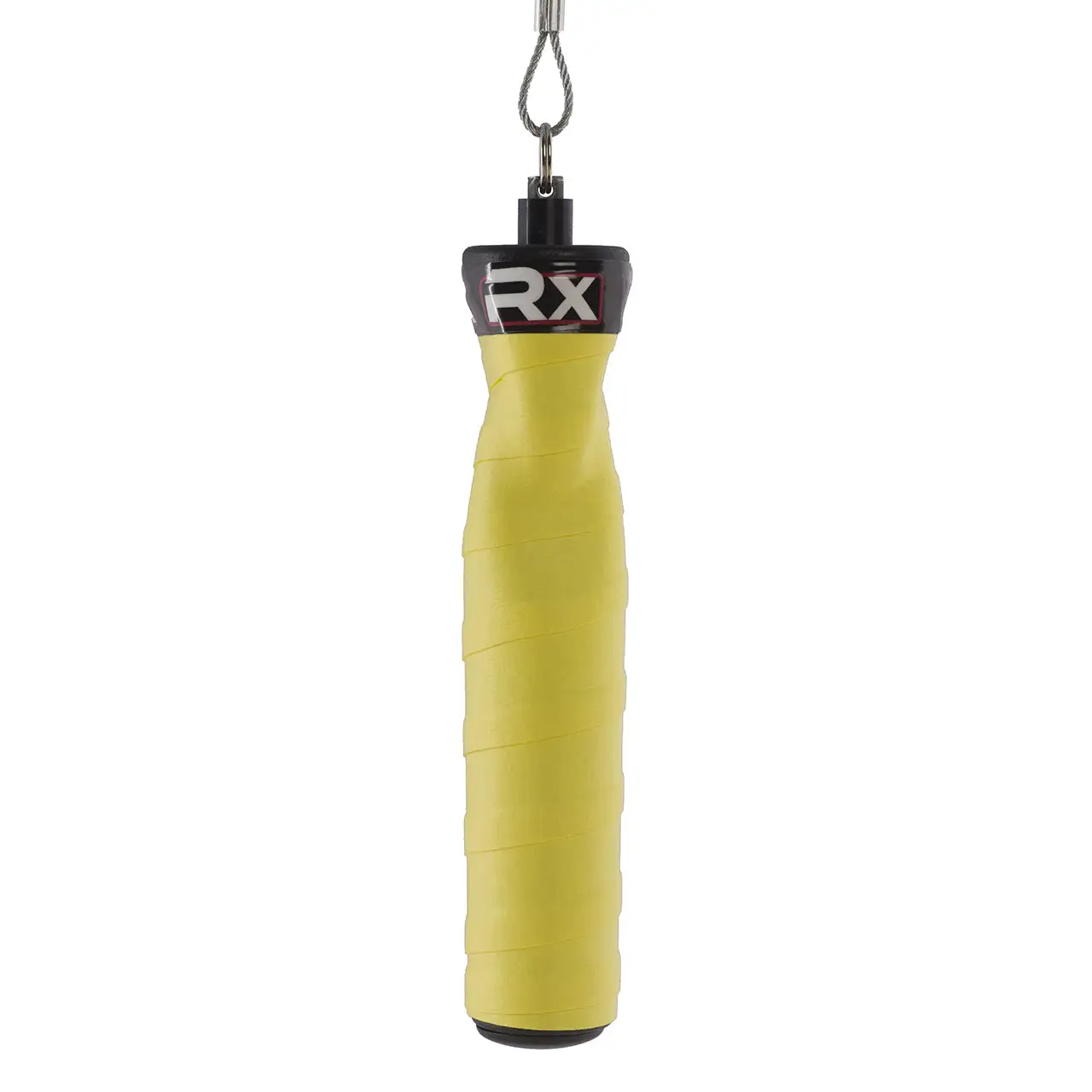 Rx Jump Rope handles use an industrial grade multidirectional swivel axis bearing system producing a near frictionless rotation. Our patent pending swivel attachment allows for the cable to reach top speeds or slow down to suit the athlete’s needs. The ergonomically contoured handles are 6 inches long and 1 inch in diameter to allow the athlete to maintain the most natural and relaxed grip. This reduces fatigue commonly experienced in the forearms and shoulders. The contoured pinch points allow the athlete to maintain optimal rope shape while still allowing for a relaxed grip. Common in most racquet sports, each handle is wrapped by hand with the most absorbent tape grip in the world.