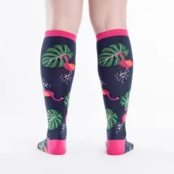 In our flamingo knee highs, your day will be paradise walked. To get the full experience, try standing like the socks’ namesake with one leg lifted. Not only will this stance make you look cooler than that hawaiian shirt you were planning to wear, it will help show off your tropical socks.