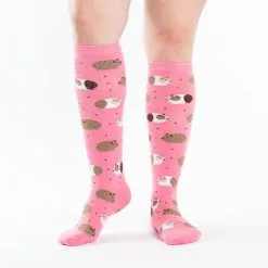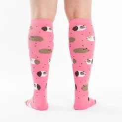 No, those aren’t sprinkles. Scattered among these seemingly innocent and adorable furry pals are the real presents the guinea pigs have left for you. The little furballs have other presents to give too, like love and squeaks! All on these deceptively cute pink knee high socks.