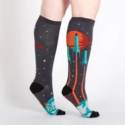 We have always reached for the stars, and somehow as we look into the great unknown of space, we see ourselves reflected back at us. What do we think we’ll find amoung the space dust and star stuff? Another inhabitable world? An intelligent alien race? When you look at this space knee high, do you see us rocketing away from our past, or toward our future?