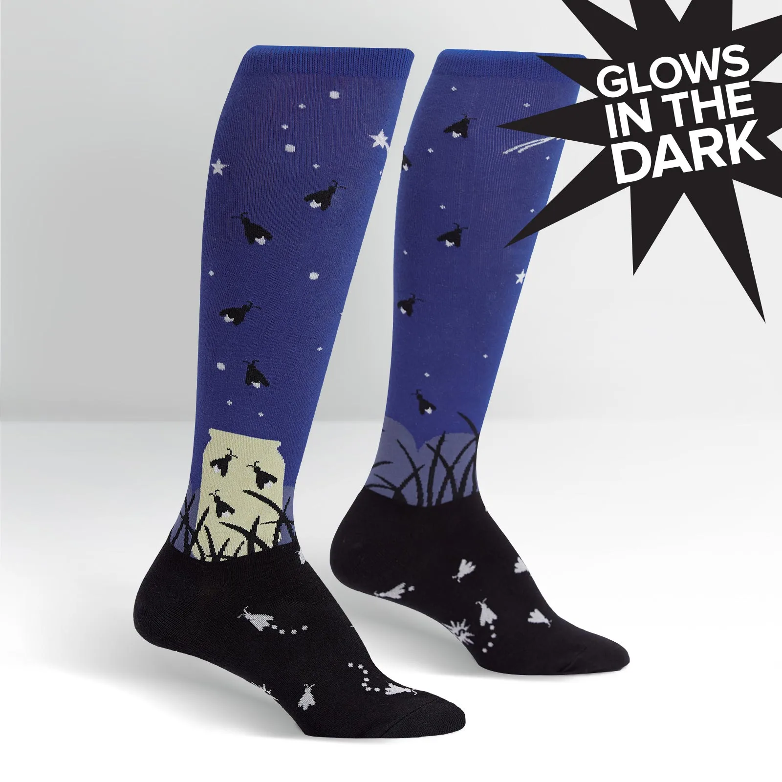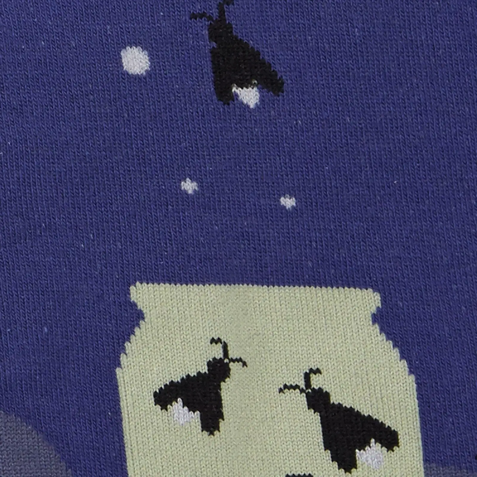 It’s dusk and the hum of the street lamps has just begun. A light appears and disappears in the air. Another and then another speck of light appears momentarily. It’s fireflies! These firefly socks capture the joy of catching bugs in our youth—like catching a falling star. Wearing these knee highs, you are surrounded by your very own galaxy.