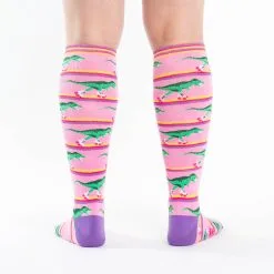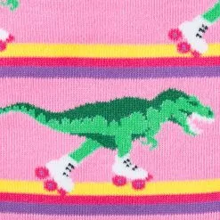 Dinosaur-covered pink knee highs prove one thing—dinos just want to have fun! Sure, they can be scary sometimes, but who could be scared of a T-Rex in skates? Nobody. Even if it does make them faster and more agile… Anyway, just roll with it.