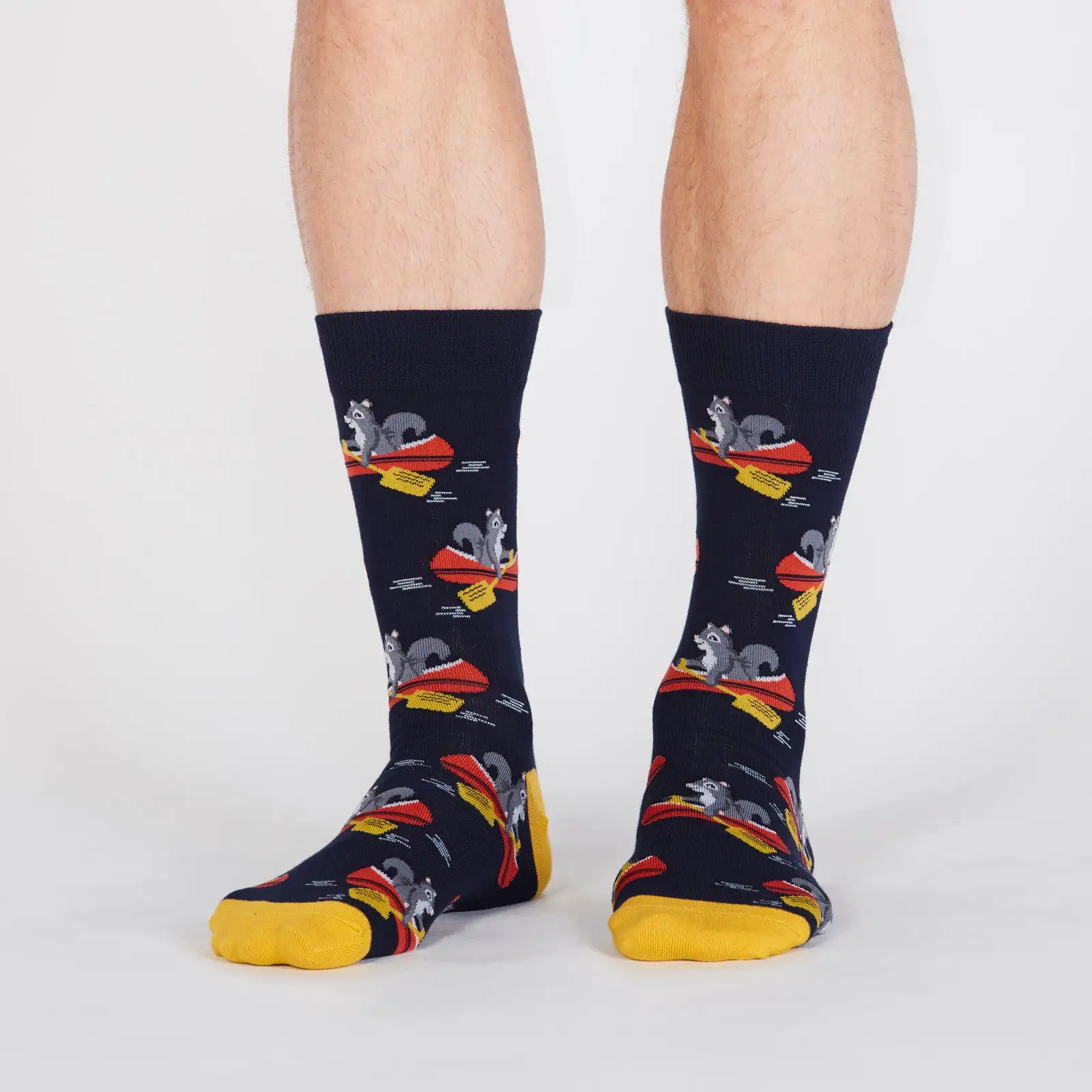 What’s a squirrel in a canoe to do? Well, he’s heading down river and he’s got a paddle so he’d be nuts not to use it—he’s got to keep paddling. We think everyone can take a lesson from this squirrel. If we’re out for a fall hike and it starts to rain—just keep walking. If we’re facing hard times, we already have what we need in hand—make the best of it and just keep going.
