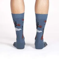 There aren’t many benefits to living among dragons. You have to watch for spontaneous fire from above, or being snatched and stolen into the sky. But, as sunset arrives and twilight falls across the land, you can watch the dance of the dragons. The red under their wings seems to mimic the sun’s setting rays as the dragons glide through the air. These dragon socks celebrate their twilight flight, and who knows, if you’re seen wearing them, you might be spared if you happen upon one.