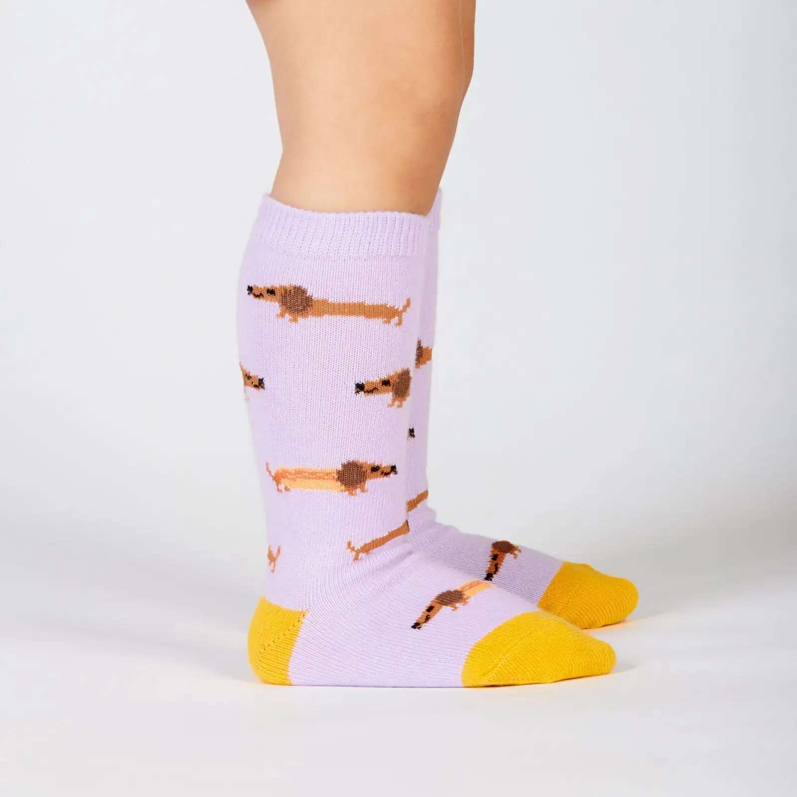 Hot dogs dressed as hot dogs. We couldn’t help ourselves. These wiener dogs, or dachshund as they’re sometimes called, are just begging to be taken to a BBQ. And your toddlers won’t fall down while running around the party because our toddler knee high socks have non-slip silicone padding to help keep your little one on their feet.