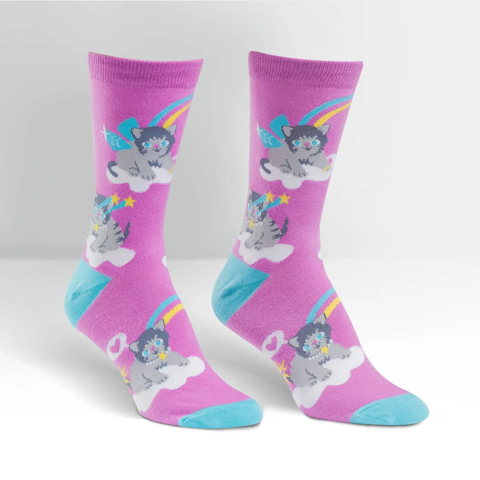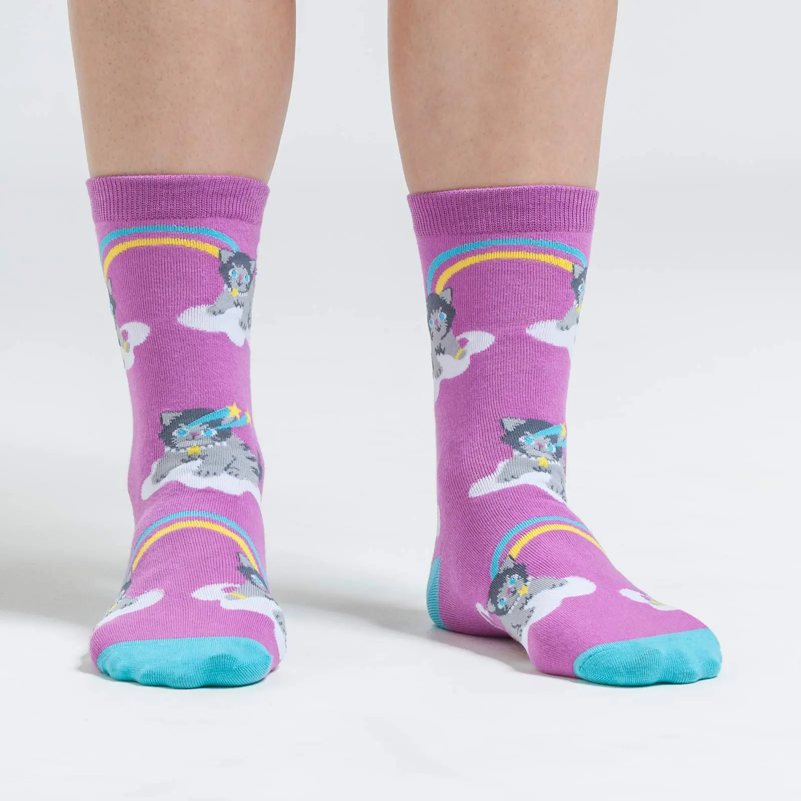 Close your eyes and go to your happy place. Is it a heavenscape full of clouds and rainbows and little kittens with wings shooting starry lasers of love out of their adorable eyes? If so, this crew sock is for you! If not, you should really question your life priorities.