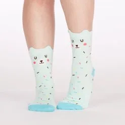 This sock is beary sweet. Those rosey cheeks, the sprinkle body, those round ears peeking out over the welt (a first for Sock It to Me!)—can you handle all the cuteness? This crew sock is a child’s drawing come to life! We received this as a Design-a-Sock entry and just had to create it. The fact that it’s available in women’s, junior, youth, and toddler (mama bear, cubs, and baby bear) is just the frosting on the cake!