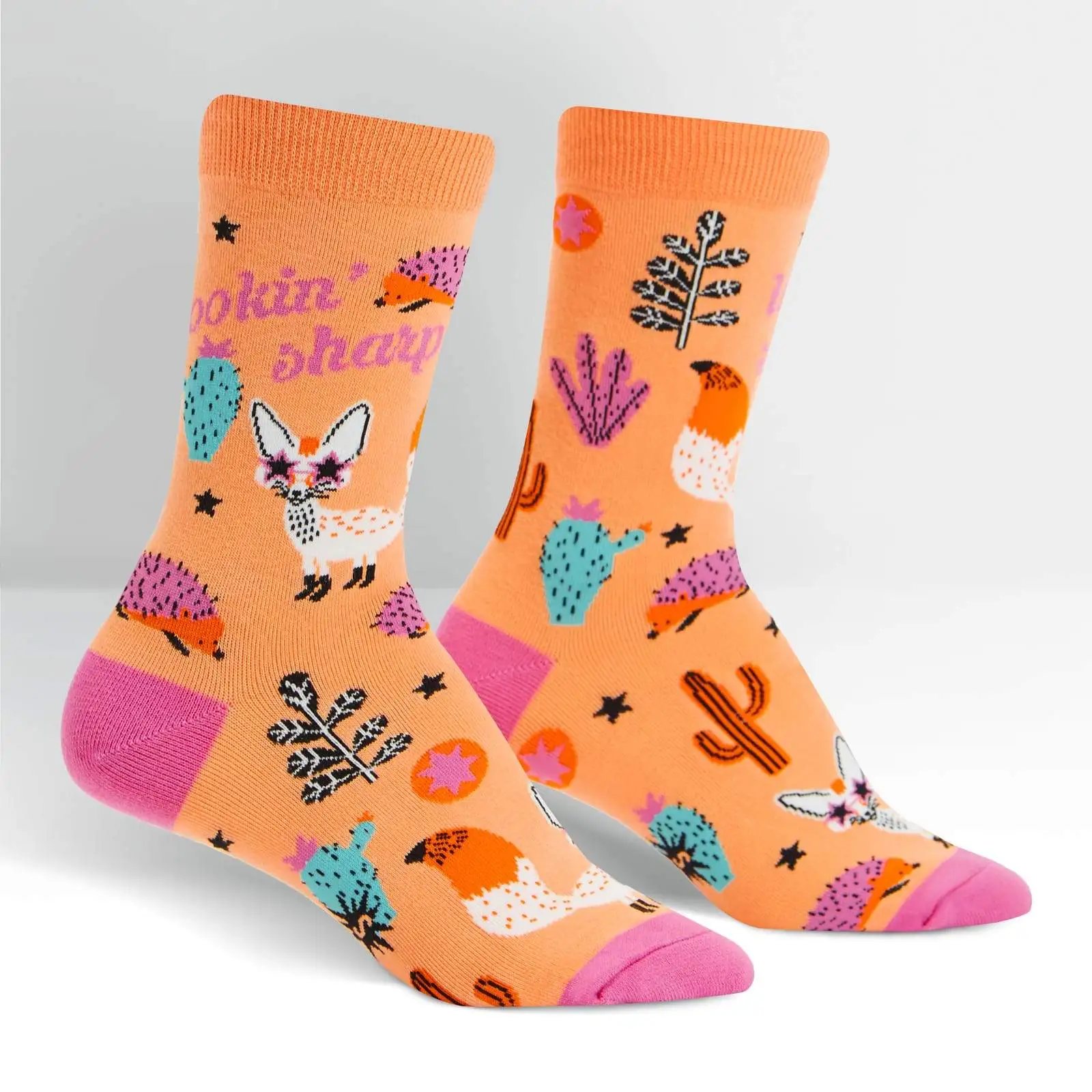 If someone says you’re lookin’ sharp, that’s a great compliment. Unless you’re a cactus. Because if you’re a cactus and someone says you’re lookin’ sharp, they’re really saying you look like you always do. But given the fact that you’re browsing our website right now, rather than standing in the middle of the desert somewhere, it’s probably safe to assume you’re not a cactus. You know who would look really sharp in a foxy new pair of peach socks? Anyone! So why not get these Lookin’ Sharp Crew Socks for yourself, or a dear friend?